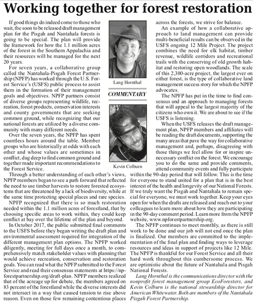 The public has 90 days to comment on the Draft Plan. If you don’t speak for the forest, who will?